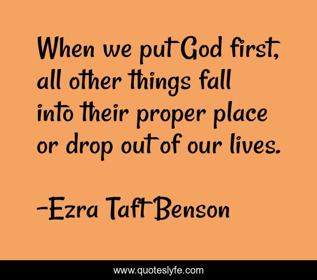This page presents the quote "When we put God first, all other things fall into their proper place or drop out of our lives.". Author of this quote is Ezra Taft Benson. This quote is about inspitational, spiritual,.