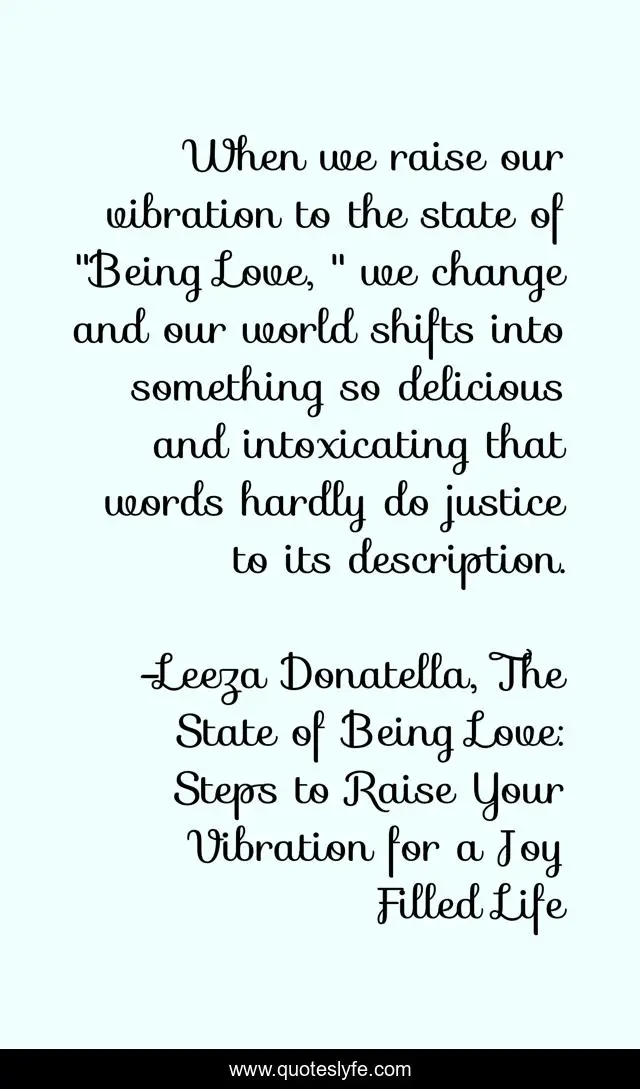 "Leeza Donatella, The State of Being Love: Steps to Raise Your Vibration for a Joy Filled Life Quotes." Quoteslyfe.com, 2025. Sun. 07 Dec. 2025. <https://www.quoteslyfe.com/quote/When-we-raise-our-vibration-to-the-78429>.
