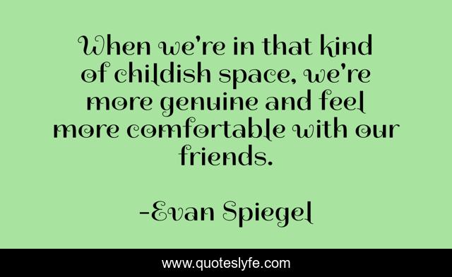 This page presents the quote "When we're in that kind of childish space, we're more genuine and feel more comfortable with our friends.". Author of this quote is Evan Spiegel. This quote is about kind, friends, comfortable,.