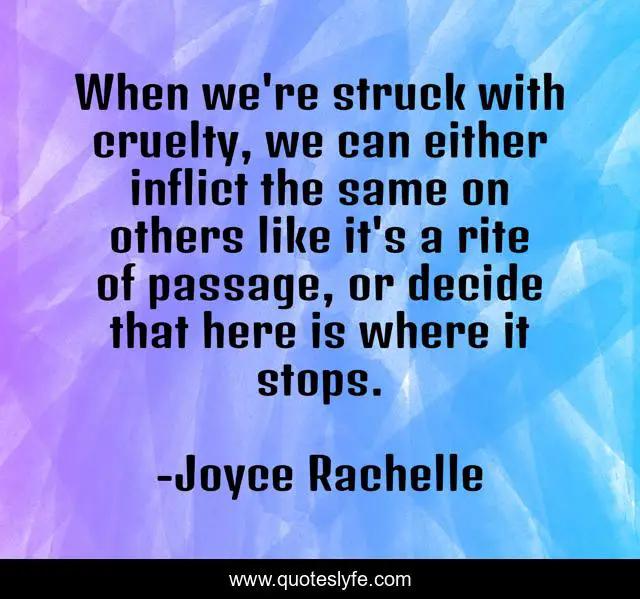 "Joyce Rachelle Quotes." Quoteslyfe.com, 2025. Sun. 07 Dec. 2025. <https://www.quoteslyfe.com/quote/When-we-re-struck-with-cruelty-we-258967>.
