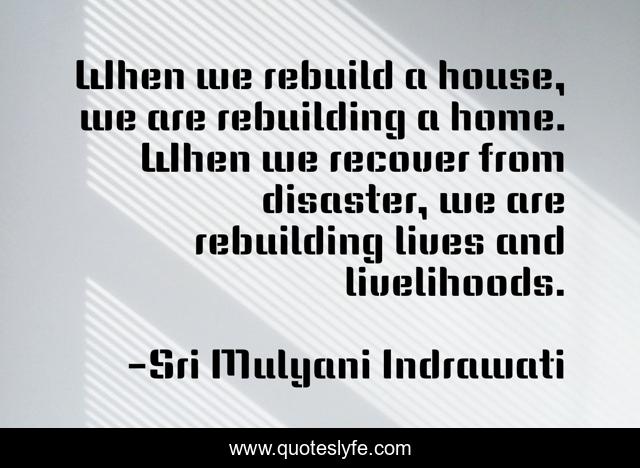 This page presents the quote "When we rebuild a house, we are rebuilding a home. When we recover from disaster, we are rebuilding lives and livelihoods.". Author of this quote is Sri Mulyani Indrawati. This quote is about house, disaster, rebuilding,.