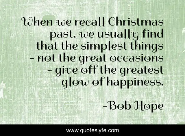 This page presents the quote "When we recall Christmas past, we usually find that the simplest things - not the great occasions - give off the greatest glow of happiness.". Author of this quote is Bob Hope. .