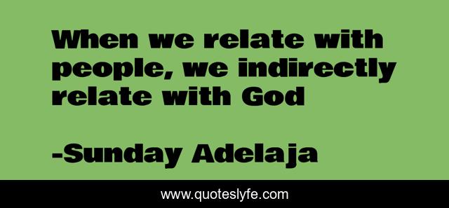 This page presents the quote "When we relate with people, we indirectly relate with God". Author of this quote is Sunday Adelaja. This quote is about love, people, money, principles, worship, destiny, god, nature-of-god, image-of-god,.