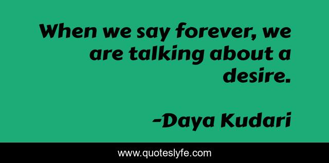 This page presents the quote "When we say forever, we are talking about a desire.". Author of this quote is Daya Kudari. This quote is about desire, romance, forever, love, affection,.
