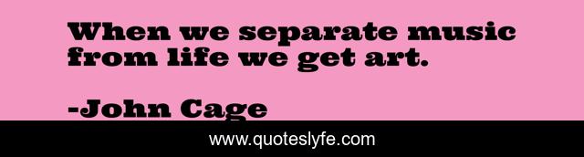 This page presents the quote "When we separate music from life we get art.". Author of this quote is John Cage. This quote is about life, art, separate,.