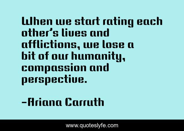 This page presents the quote "When we start rating each other’s lives and afflictions, we lose a bit of our humanity, compassion and perspective.". Author of this quote is Ariana Carruth. This quote is about pregnancy-loss, compassion, grief, thought-provoking, inspirational, affliction, enthusiasm, humanity,.