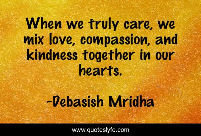 This page presents the quote "When we truly care, we mix love, compassion, and kindness together in our hearts.". Author of this quote is Debasish Mridha. This quote is about love, compassion, philosophy, debasish-mridha, quotes, when-we-truly-care, debasish-mridha-md, inspirational, enthusiasm,.