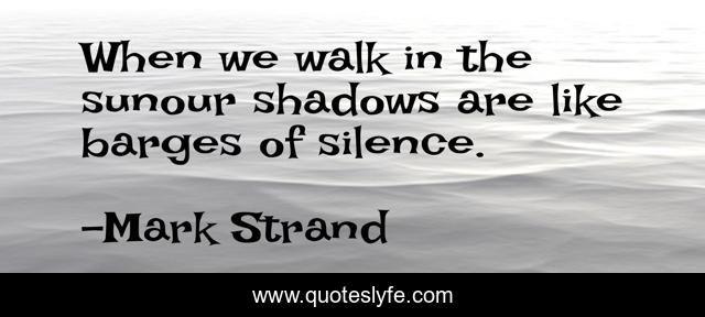 This page presents the quote "When we walk in the sunour shadows are like barges of silence.". Author of this quote is Mark Strand. This quote is about shadows, poetry, silence,.