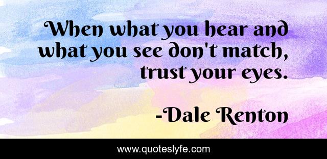 This page presents the quote "When what you hear and what you see don't match, trust your eyes.". Author of this quote is Dale Renton. This quote is about relationships, philosophy-of-life,.