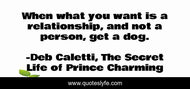 This page presents the quote "When what you want is a relationship, and not a person, get a dog.". Author of this quote is Deb Caletti, The Secret Life of Prince Charming. This quote is about love, companionship, relationship, dog, romance, truth, affection,.