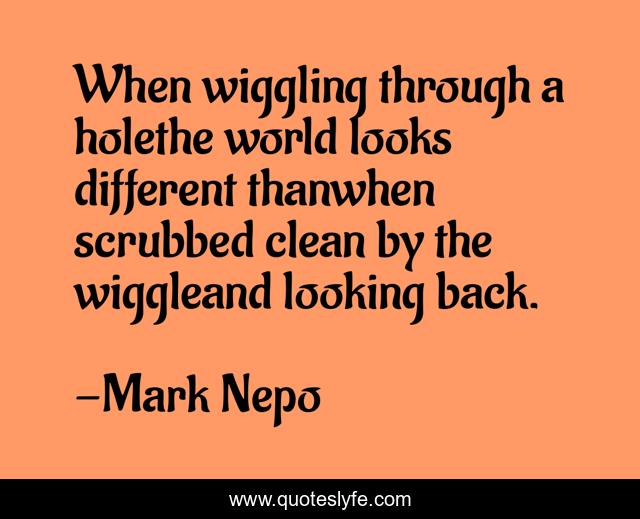 This page presents the quote "When wiggling through a holethe world looks different thanwhen scrubbed clean by the wiggleand looking back.". Author of this quote is Mark Nepo. .