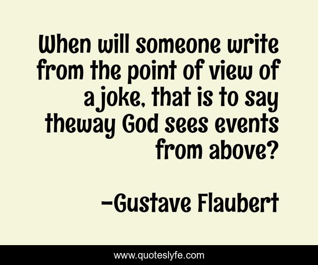 This page presents the quote "When will someone write from the point of view of a joke, that is to say theway God sees events from above?". Author of this quote is Gustave Flaubert. .