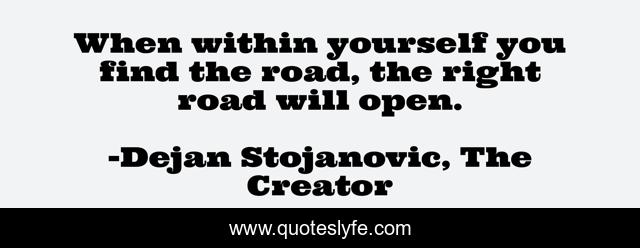 This page presents the quote "When within yourself you find the road, the right road will open.". Author of this quote is Dejan Stojanovic, The Creator. This quote is about the-creator, literature, dejan-stojanovic, poetry, wisdom, quotes, road, quotes-to-live-by, yourself,.