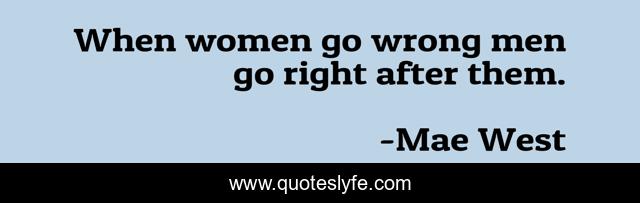 This page presents the quote "When women go wrong men go right after them.". Author of this quote is Mae West. This quote is about men, women,.
