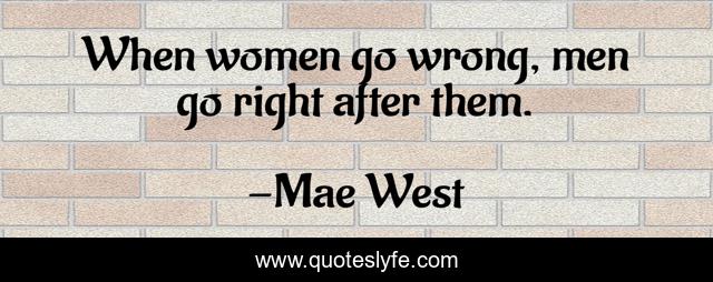 This page presents the quote "When women go wrong, men go right after them.". Author of this quote is Mae West. This quote is about go, men, right,.