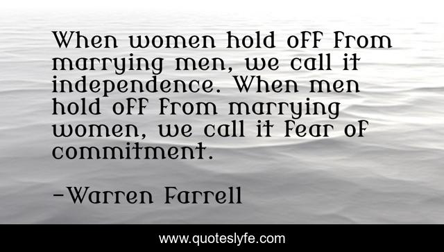 This page presents the quote "When women hold off from marrying men, we call it independence. When men hold off from marrying women, we call it fear of commitment.". Author of this quote is Warren Farrell. This quote is about men, marriage, commitment, independence, women,.