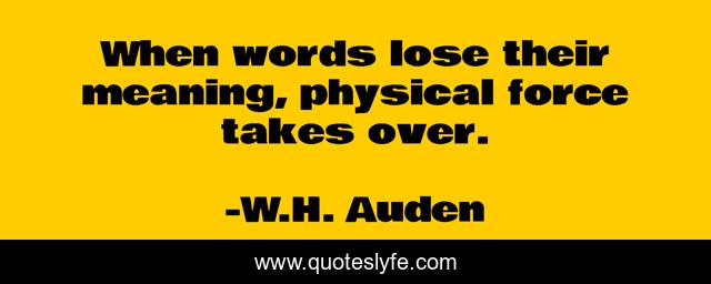 This page presents the quote "When words lose their meaning, physical force takes over.". Author of this quote is W.H. Auden. This quote is about poetry, writing,.