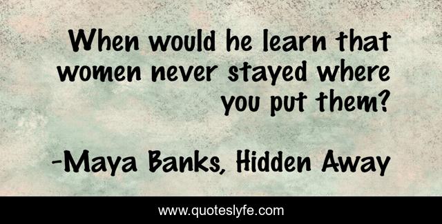 "Maya Banks, Hidden Away Quotes." Quoteslyfe.com, 2025. Sat. 06 Dec. 2025. <https://www.quoteslyfe.com/quote/When-would-he-learn-that-women-never-17752>.