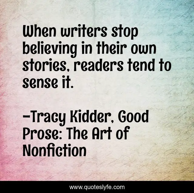 "Tracy Kidder, Good Prose: The Art of Nonfiction Quotes." Quoteslyfe.com, 2025. Fri. 05 Dec. 2025. <https://www.quoteslyfe.com/quote/When-writers-stop-believing-in-their-own-219281>.