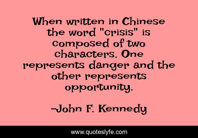 This page presents the quote "When written in Chinese the word "crisis" is composed of two characters. One represents danger and the other represents opportunity.". Author of this quote is John F. Kennedy. This quote is about victories, worthy,.