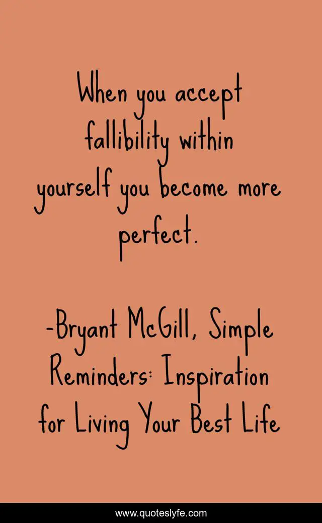 This page presents the quote "When you accept fallibility within yourself you become more perfect.". Author of this quote is Bryant McGill, Simple Reminders: Inspiration for Living Your Best Life. This quote is about becoming, acceptance, fallibility, perfection,.