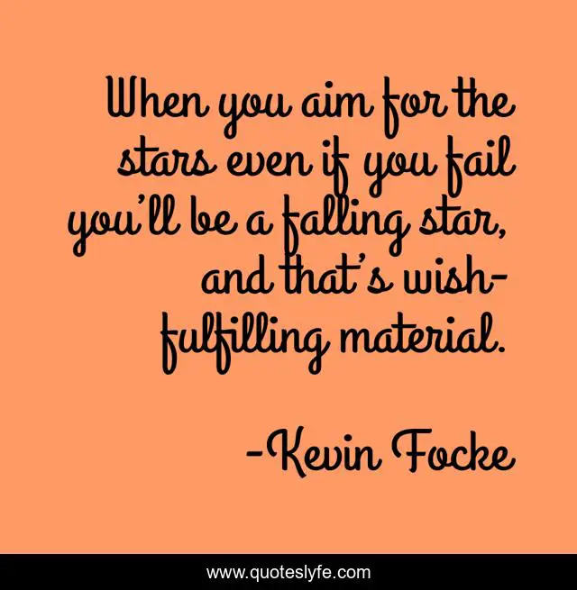 This page presents the quote "When you aim for the stars even if you fail you’ll be a falling star, and that’s wish-fulfilling material.". Author of this quote is Kevin Focke. This quote is about confidence, positive, motivational, optimistic, inspirational, enthusiasm,.