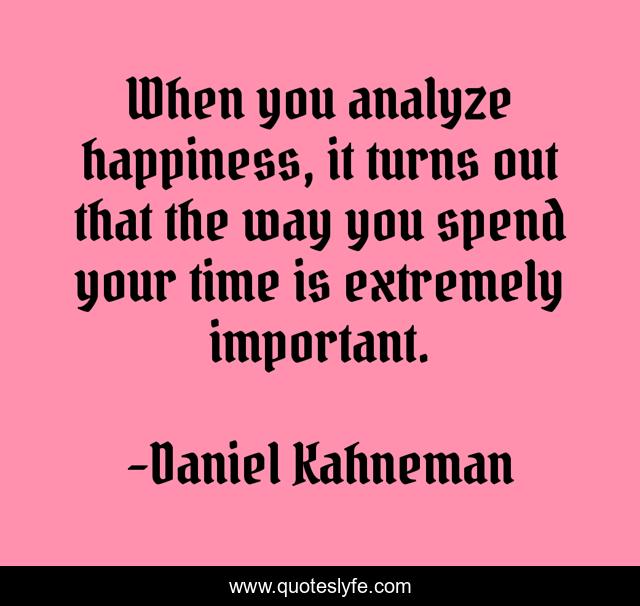 This page presents the quote "When you analyze happiness, it turns out that the way you spend your time is extremely important.". Author of this quote is Daniel Kahneman. This quote is about important, time,.