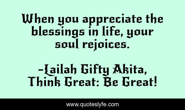"Lailah Gifty Akita, Think Great: Be Great! Quotes." Quoteslyfe.com, 2025. Mon. 08 Dec. 2025. <https://www.quoteslyfe.com/quote/When-you-appreciate-the-blessings-in-life-62598>.