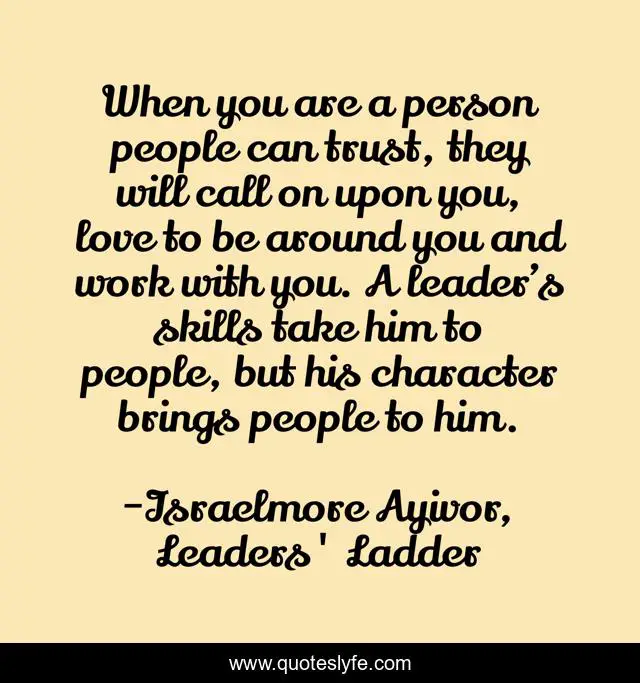 When you are a person people can trust, they will call on upon you, love to be around you and work with you. A leader’s skills take him to people, but his character brings people to him.