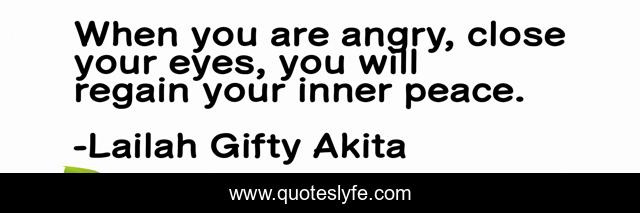 This page presents the quote "When you are angry, close your eyes, you will regain your inner peace.". Author of this quote is Lailah Gifty Akita. This quote is about inspiring, wise-thoughts, mediation, life-lessons, anger, inner-peace,.