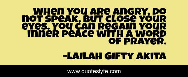 This page presents the quote "When you are angry, do not speak, but close your eyes. You can regain your inner peace with a word of prayer.". Author of this quote is Lailah Gifty Akita. This quote is about angry, prayer, self-realization, self-help, life-and-living, inner-peace,.