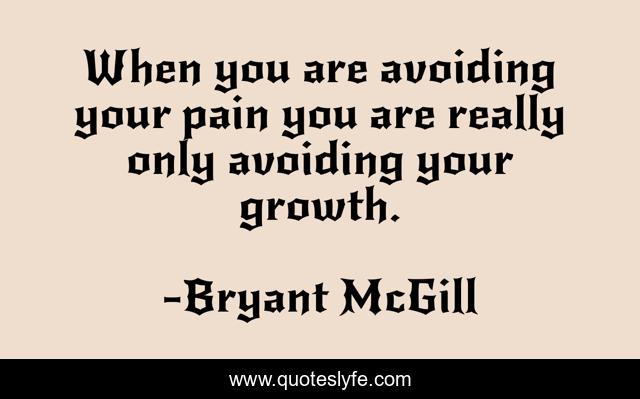 This page presents the quote "When you are avoiding your pain you are really only avoiding your growth.". Author of this quote is Bryant McGill. This quote is about spirituality, growth, pain,.