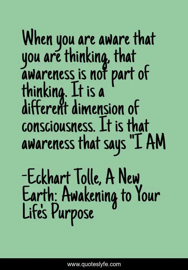 "Eckhart Tolle, A New Earth: Awakening to Your Life's Purpose Quotes." Quoteslyfe.com, 2025. Sun. 07 Dec. 2025. <https://www.quoteslyfe.com/quote/When-you-are-aware-that-you-are-155692>.