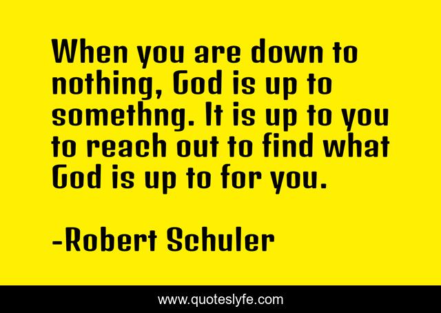 This page presents the quote "When you are down to nothing, God is up to somethng. It is up to you to reach out to find what God is up to for you.". Author of this quote is Robert Schuler. This quote is about faith, coaching-executive, christianity,.