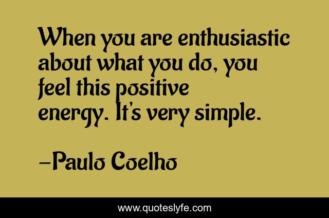 This page presents the quote "When you are enthusiastic about what you do, you feel this positive energy. It's very simple.". Author of this quote is Paulo Coelho. This quote is about simple, positive energy,.