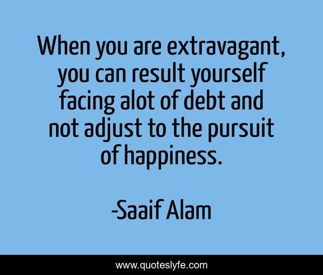 This page presents the quote "When you are extravagant, you can result yourself facing alot of debt and not adjust to the pursuit of happiness.". Author of this quote is Saaif Alam. This quote is about education, budgeting, future-financial-planning, life-lessons, economy,.