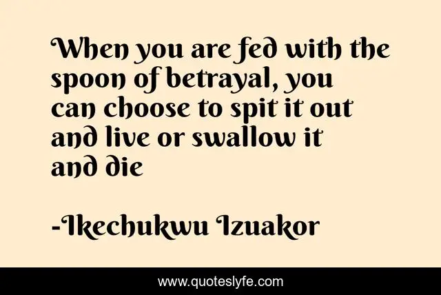 When you are fed with the spoon of betrayal, you can choose to spit it out and live or swallow it and die