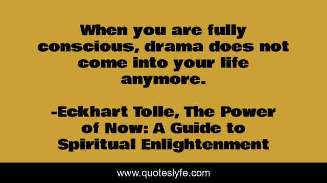 This page presents the quote "When you are fully conscious, drama does not come into your life anymore.". Author of this quote is Eckhart Tolle, The Power of Now: A Guide to Spiritual Enlightenment. This quote is about drama, consciousness,.