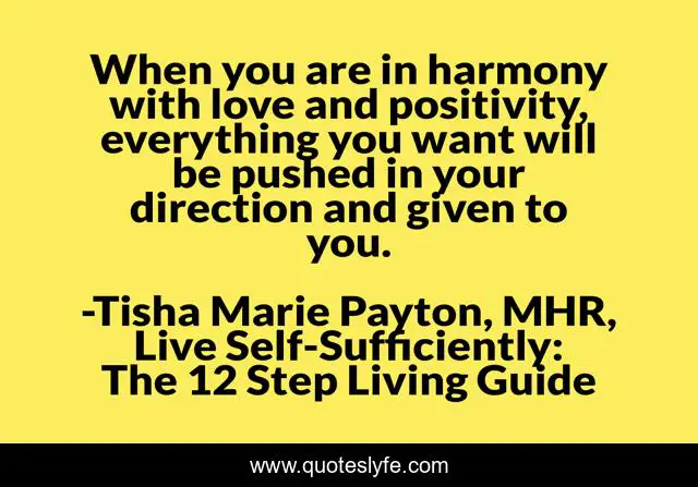 "Tisha Marie Payton, MHR, Live Self-Sufficiently: The 12 Step Living Guide Quotes." Quoteslyfe.com, 2025. Sun. 07 Dec. 2025. <https://www.quoteslyfe.com/quote/When-you-are-in-harmony-with-love-83593>.