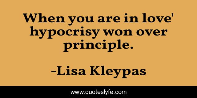 This page presents the quote "When you are in love' hypocrisy won over principle.". Author of this quote is Lisa Kleypas. This quote is about love, principles, affection,.