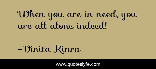 This page presents the quote "When you are in need, you are all alone indeed!". Author of this quote is Vinita Kinra. This quote is about need, enthusiasm, inspirational,.