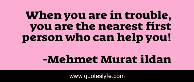 This page presents the quote "When you are in trouble, you are the nearest first person who can help you!". Author of this quote is Mehmet Murat ildan. This quote is about nearest, helping, help, ildan-wise-sayings, helping-people, ildan-wisdom, turkish, turkish-playwrights, turkish-wisdom-words,.