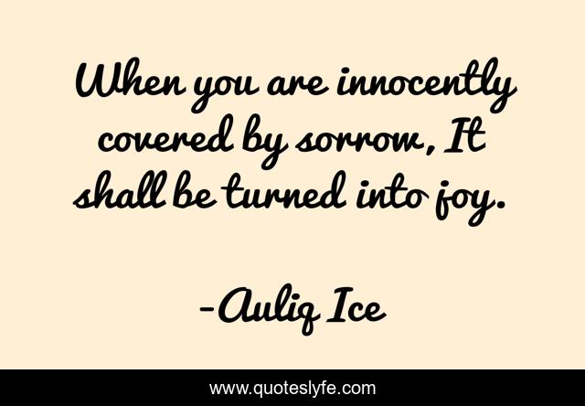 This page presents the quote "When you are innocently covered by sorrow, It shall be turned into joy.". Author of this quote is Auliq Ice. This quote is about succes, confidence, success, positive, sorrow, motivational, inspiarational, optimistic, inspirational,.