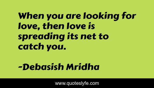 This page presents the quote "When you are looking for love, then love is spreading its net to catch you.". Author of this quote is Debasish Mridha. This quote is about life, love, knowledge, inspirational, intelligence, philosophy, wisdom, quotes, affection,.