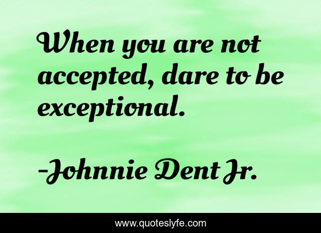 This page presents the quote "When you are not accepted, dare to be exceptional.". Author of this quote is Johnnie Dent Jr.. This quote is about acceptance, acceptance-of-others,.