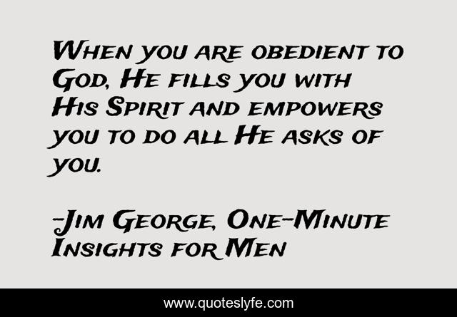 This page presents the quote "When you are obedient to God, He fills you with His Spirit and empowers you to do all He asks of you.". Author of this quote is Jim George, One-Minute Insights for Men. This quote is about faith, christian, fills, god, empower, blessed, obedient, love, spirit,.
