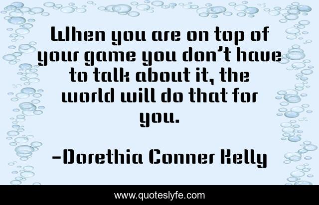 This page presents the quote "When you are on top of your game you don’t have to talk about it, the world will do that for you.". Author of this quote is Dorethia Conner Kelly. This quote is about entrepreneur, business, management-and-leadership,.