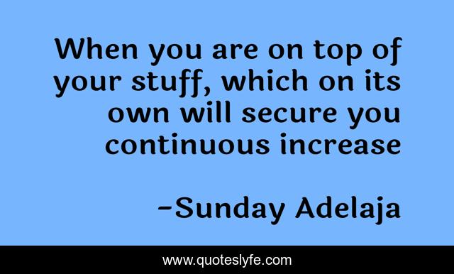 This page presents the quote "When you are on top of your stuff, which on its own will secure you continuous increase". Author of this quote is Sunday Adelaja. This quote is about secure, top, continuous, increase, stuff, which,.