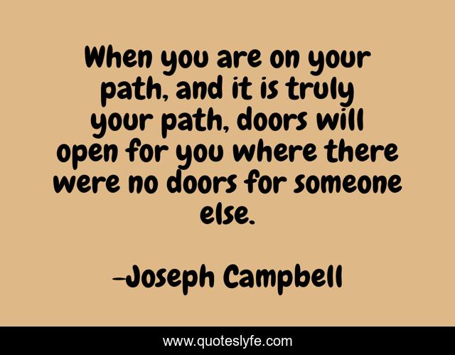 This page presents the quote "When you are on your path, and it is truly your path, doors will open for you where there were no doors for someone else.". Author of this quote is Joseph Campbell. This quote is about enthusiasm, inspirational,.