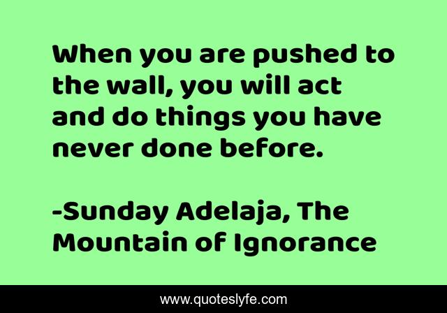 This page presents the quote "When you are pushed to the wall, you will act and do things you have never done before.". Author of this quote is Sunday Adelaja, The Mountain of Ignorance. This quote is about mountain, life, force, darkness, power, danger, god, people, ignorance,.